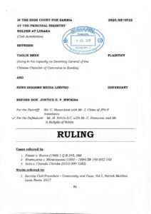 Yaolin Shen (Suing in his capacity as Secretary General of the Chinese Chamber of Commerce in Zambia) v News Diggers Media Zambia 2025 ZMHC 68 (14 July 2025)